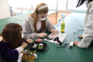 こちらはミシンを使っての帽子作り!