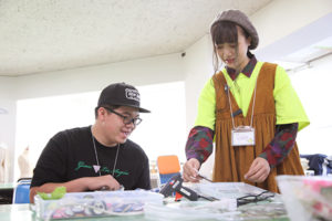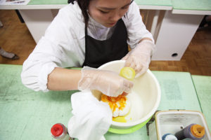 真っ白のTシャツを使って1から自分の好きな色に染色体験が出来ます!