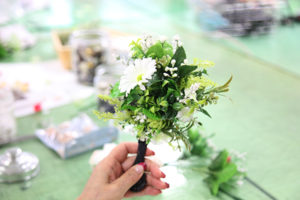 飾りをグルーガン(接着剤)や縫いで取り付けて