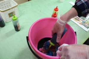 好きな色をつけて、輪ゴムで縛って模様を付けていきます👀