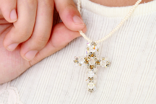 おばあちゃんの手作りアクセサリーは、世界に一個だけのオリジナル。レトロな雰囲気が好きだというKawamuraさんのコーディネートにぴったりなアイテムで、とっても気に入っているんだって♪