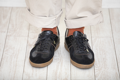 ☆ここにも注目☆ ホースハイド(大人の馬の皮)で作られたシューズが足元に上品な印象をプラス。ネクタイとの相性もバッチリで、履けば履くほど良い味もでてきそう♪ ちらっと見える靴下が良い差し色になっています!