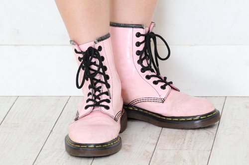 高校生の時に地元の古着屋さんで見つけて、一目惚れしたというピンクのマーチン。バイト代をためて買った思い出がある靴なんだとか。Pinkコーデの決め手になってますね♡