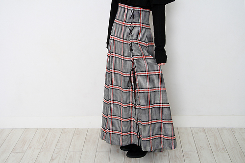 「今日のコーデのメインはこのスカート。他のアイテムは色味を抑えて、スカートが目立つように。全部が黒だと少し重すぎてしまうので、帽子はスカートに合わせてグレーのものをチョイスしました☆」