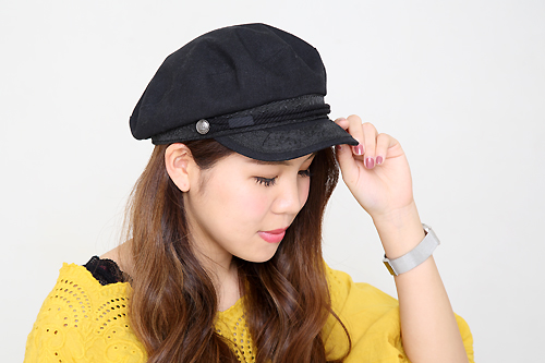 お気に入りのブランド『MOUSSY』のキャスケットは、何にでも合う万能アイテム。ちょっと物足りないときにプラスすれば一気にオシャレ度UP♡ 時計とアクセはシルバーで統一。ほかの小物は黒で色を合わせていて、トータルバランスがカンペキなコーデになっていますね!」