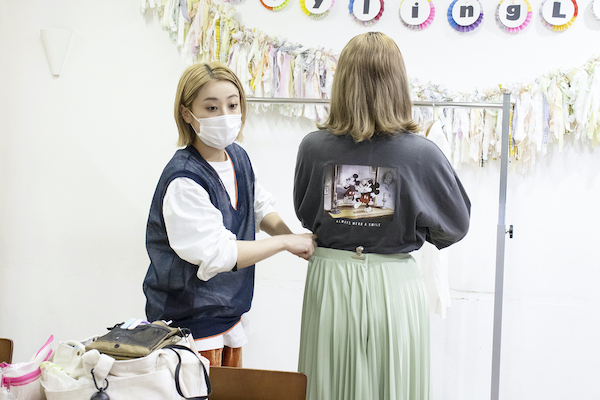 撮影で衣装のサイズ調整をするためにしているクリップの使い方も披露。