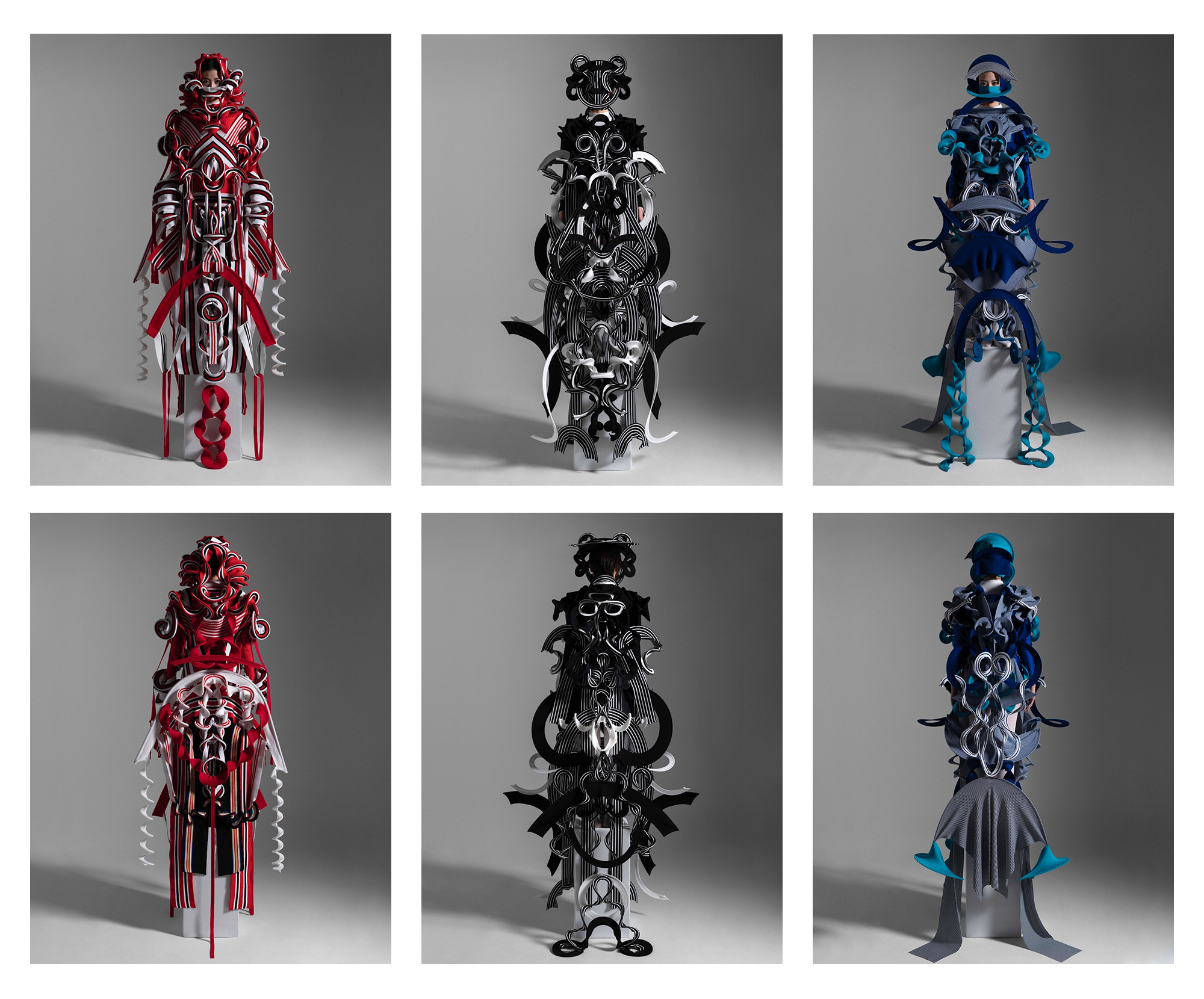 自然界に存在する色彩やフォームを想像した〈Nature’s Contours〉のふたつの立体的なドレスシリーズによって、