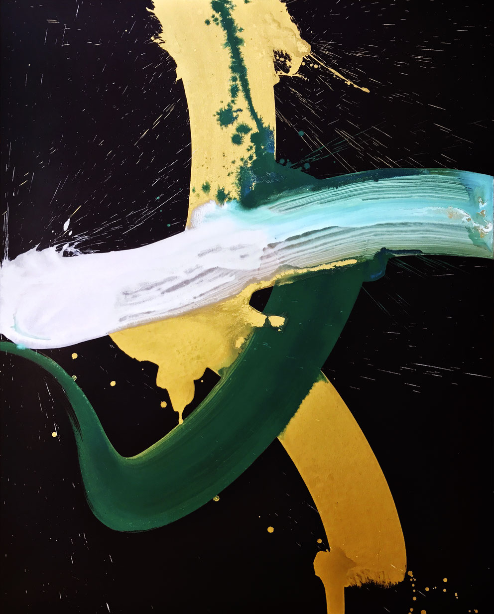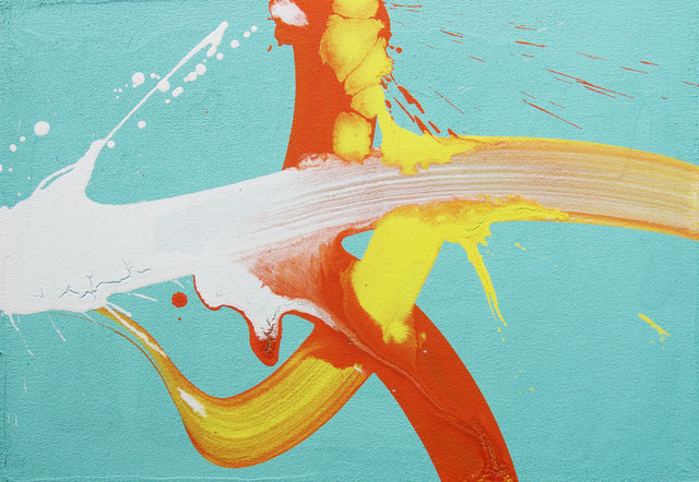 "女" という字の上下左右をキャンバスからはみ出して書くことにより