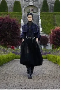2025年クルーズコレクションをスコットランドのドラモンド城の庭園で発表した。