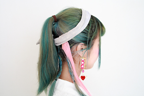 「ヘアスタイルは“ジャック”を意識☆ ハーフアップにしてバンダナを使い、下の部分は三つ編みに。ピンクのエクステは差し色で入れました。カラフルなのが好きなのでヘアも色鮮やかに。民族っぽい感じの柄のイヤリングもお気に入りのアイテムです」
