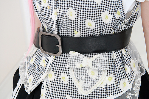 レースがカワイイベストは原宿の古着屋でGETしたもの。リボンのついたハート形のポケットがポイントです。海賊らしさをイメージしてつけた太めのベルトは、スタイルアップ効果もあって一石二鳥なんだって♪