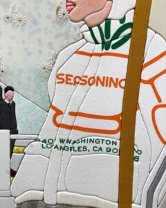 さらに古着を埋め込んでつくった立体コラージュであることが、