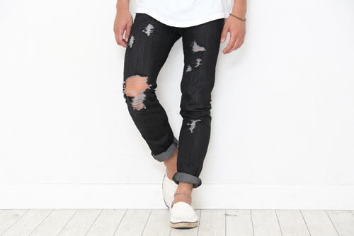 「ダメーズジーンズが欲しかったんですけど、買いに行く時間がなかなか無くて……それで、普段からよく穿いていたパンツを、思い切って自分で穴を空けてリメイクしちゃいました!