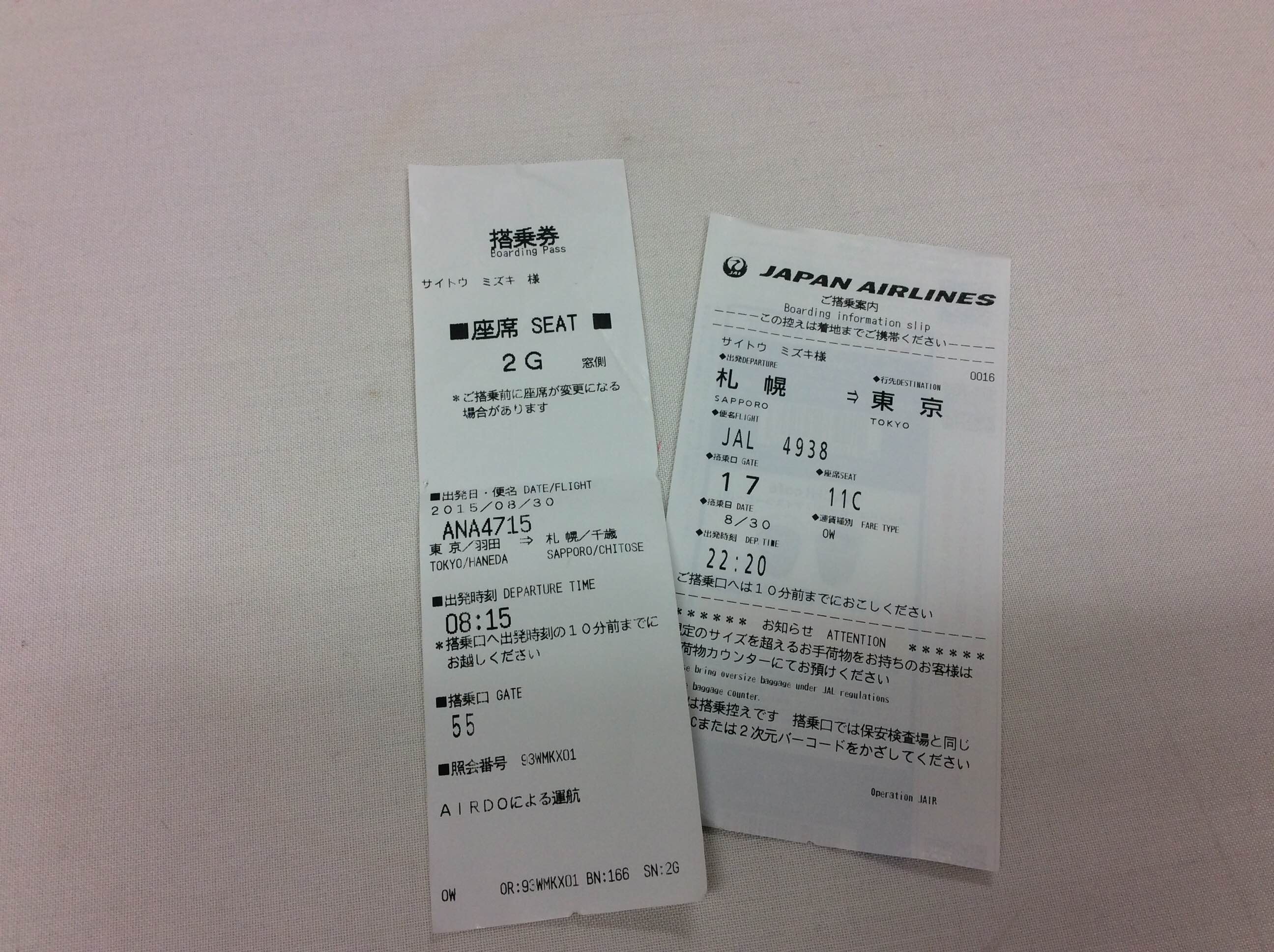 最終の飛行機で札幌を発ち、羽田に着いたら日付が変わっていました(笑)。