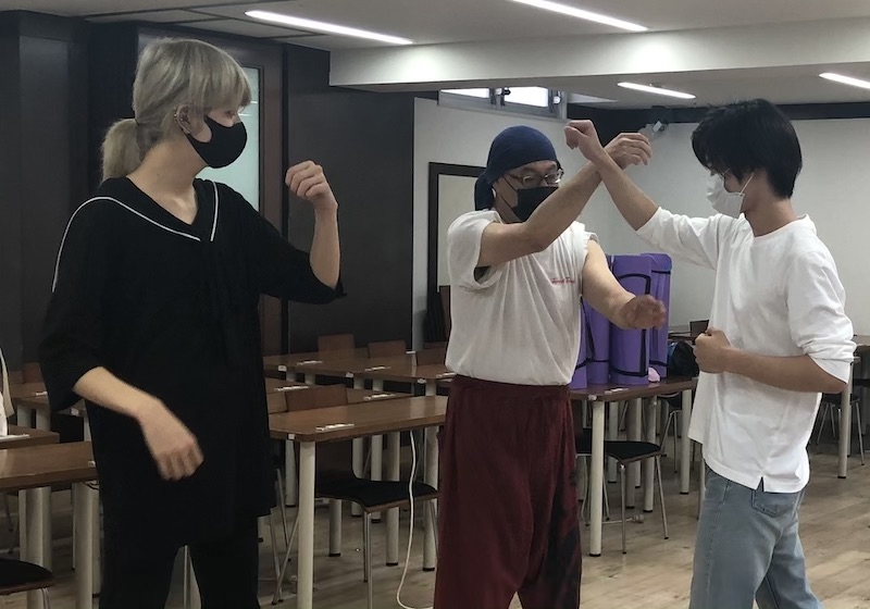 Takeruとペアを組んで、一緒に基本的な動きから練習です!