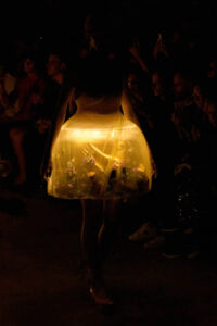 アンダーカバー(UNDERCOVER)では、暗闇の中で光るドレス群がフィナーレに登場。