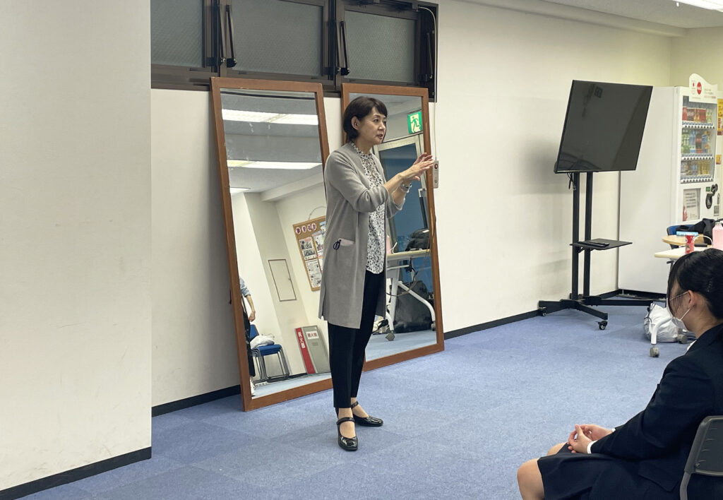 「基本の立ち姿勢」「イスの座り方」「お辞儀の仕方」「基本のウォーキング」に挑戦🌞