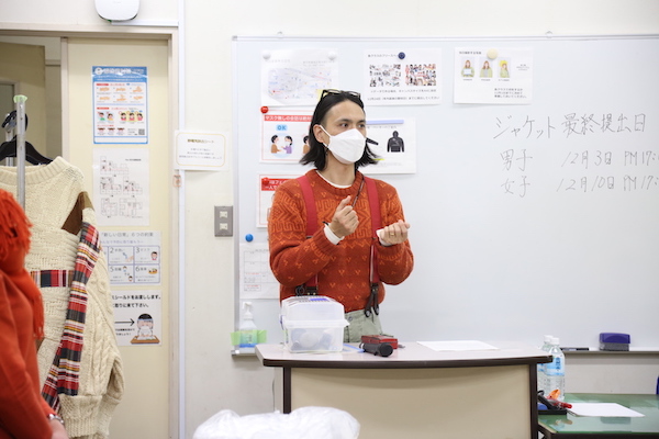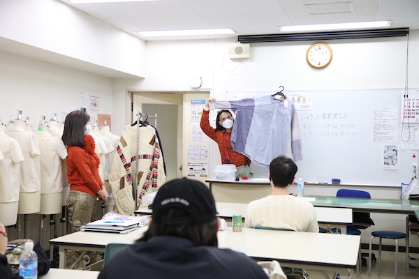 パタンナーのご経験もあり、「学生のみんなと一緒に楽しみながら服作りをしたい」とご協力くださいました。