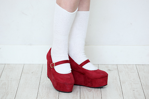 「今日のコーデは、この靴をベースに決めていきました! 足元が赤だと引き締まった印象になるし、ヒールが15cmくらいあって大人っぽく見えるんです。ベロア素材も高級感があってお気に入り♡」