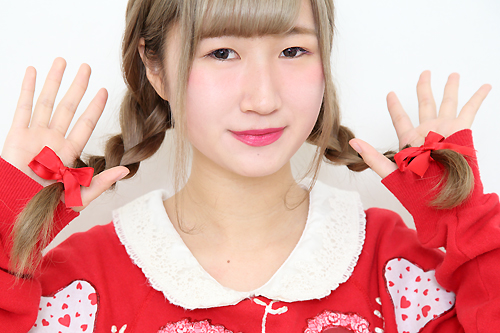 「子どもっぽいといえば三つ編みかなって思って♡ ゆるめに編んでいるところがポイントですよ♪ トレーナーの色に合わせて赤いリボンもつけてみました。お人形さんみたいでカワイイでしょ♡?」