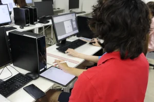 授業でデザインを描いたりメモを取ったり、