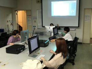 オンラインで同じ授業を映しています(サポートは飯田先生)