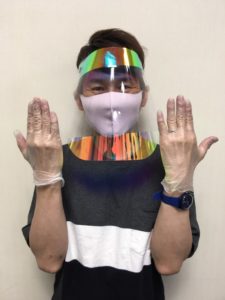 私もフェイスシールド+マスク+手袋というスタイルでメイクをしました。