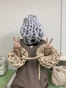 画像は編み終わったあとに、かわいくおふざけしていた学生です!