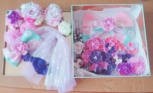 授業で習ったつまみ細工で、可愛らしい頭飾りを