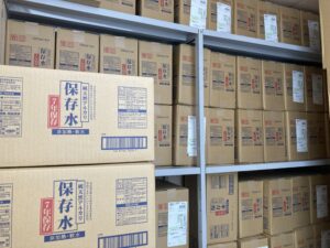 本校では、災害等の緊急時の為に水や食料などを備蓄しています。