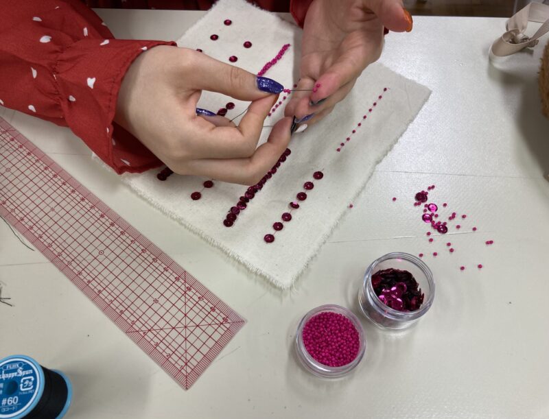 ビーズやスパンコールを使っての刺繍にも挑戦しました🤩