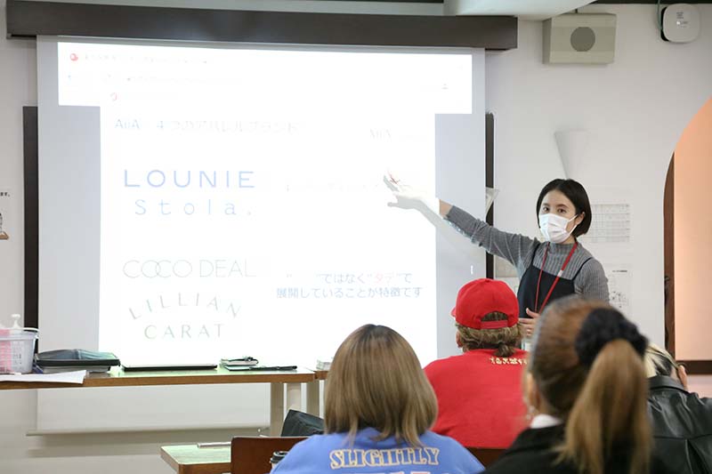 アイア様が展開する各ブランドの特徴やSPA企業の職種・こだわりなど、仕事内容について詳しくお話いただき、学生も熱心にメモを取りながら聞いていました。