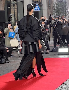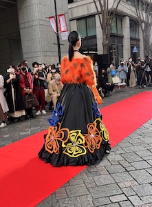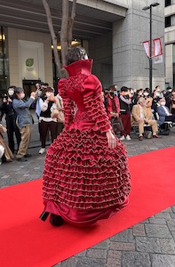丸の内仲通りに設置されたレッドカーペットのランウェイを、プロのモデルさんのウォーキングで颯爽と😆