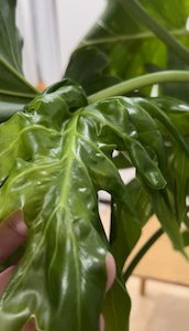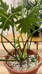 大きくなりすぎた葉っぱを切り、新芽に栄養が行くように剪定します。
