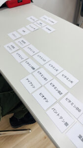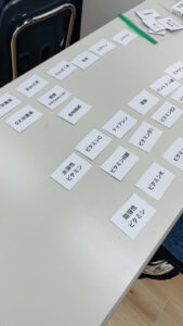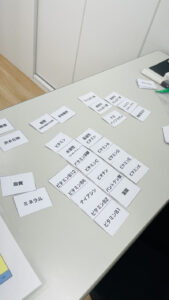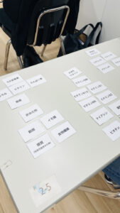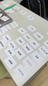 今日は栄養カードを使って栄養素の分類や働きを整理しました。