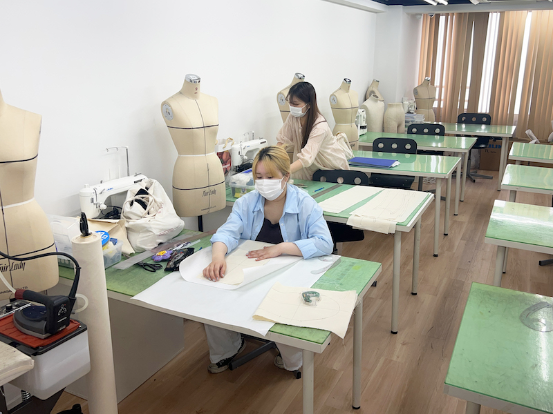 パターンメイキング検定の2次実技試験に向けて夏休みもコツコツと練習中!