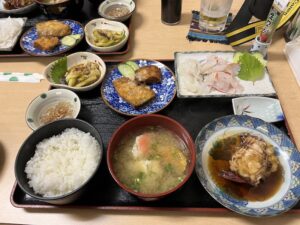 今回は民泊を選び、夜ご飯は漁師のオーナーさんが釣った新鮮な魚定食🐟