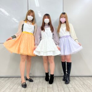 3人でデザインを合わせ、色違いで製作しました!アイドルみたいなエプロン👗