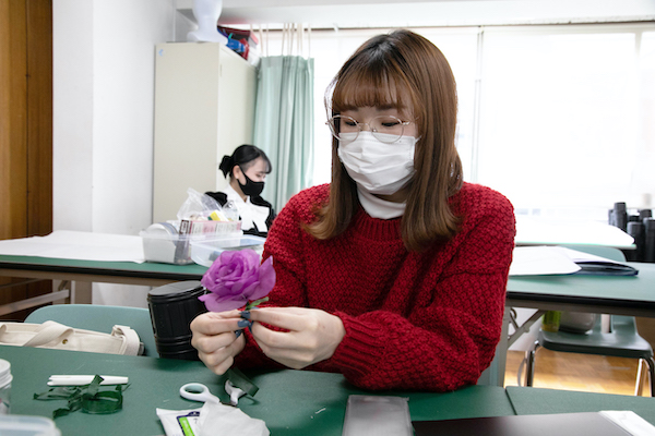 つまみ細工や装花作り、編み物でモチーフ製作など、
