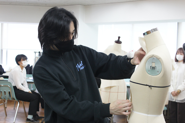 ドレーピングはアパレル基礎課程に入学した1年生の必修科目。