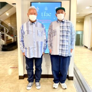 koga先生はストライプのパッチワークシャツ!