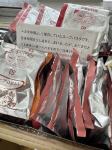 今回は賞味期限が切れたスープパスタ約1000食を職員で分けました。