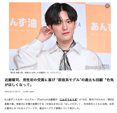 モデル科講師の近藤耀司先生が、第6回「黒髪大賞」の特別賞を受賞されました!