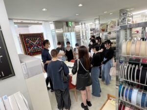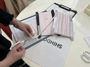 ずらっと並んだリボンやテープの数に学生もびっくりです!