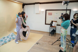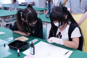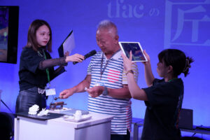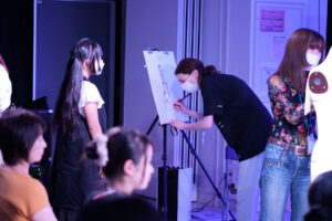 スタイリスト科担当Yamauchi先生はハサミを使って、ワークショップで作成できる