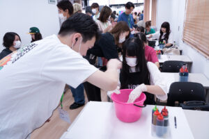 学生スタッフが隣で基本の編み方を丁寧に教えてくれるので安心してご参加ください🌟
