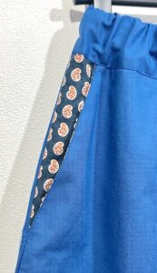 ポケット部分はアフリカンプリントの余った布を使用しました。