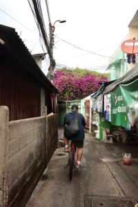 繁華街から裏道に入り、屋台やお菓子を作っている民家、水上マーケット、