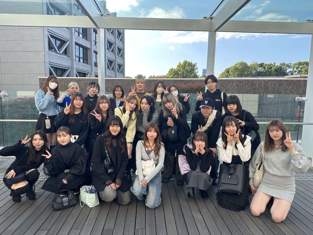 現代では女性のワードローブとして定着している、ピーコート、パンツスーツ、トレンチコート、タキシードなど、先駆的に紳士服を女性向けに改良したことで注目されたブランドということもあり、この日の学生はジャケットを着たり、ブラックコーデでスタイリングしている学生が多くいました✨