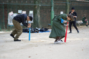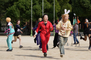 次の走者にダンボールをバトンタッチした後は、借り人競争!